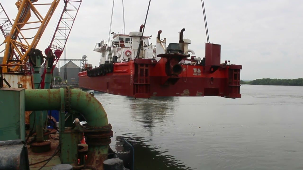 La M.V. RUN DE atracó en Contecon para el desembarque de las dragas, las cuales realizarán el dragado en el Río Guayas (2023).