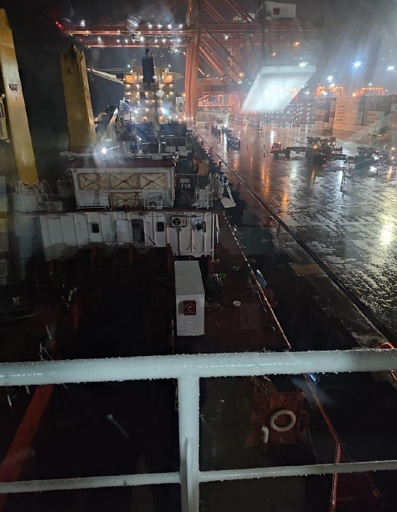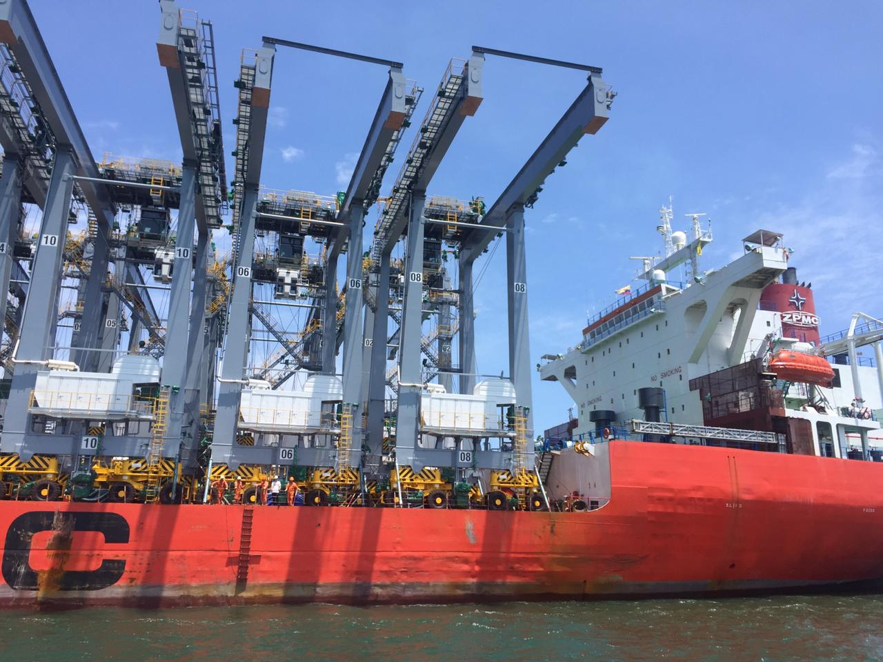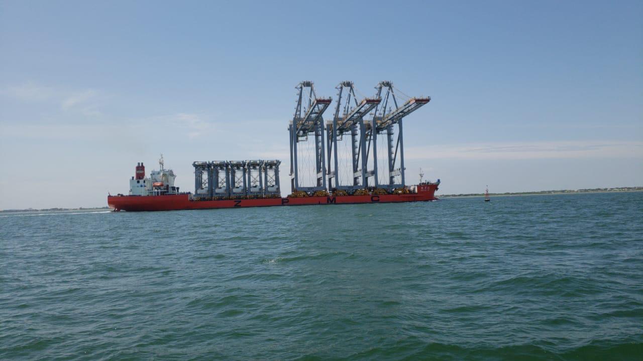 La M.V. RUN DE atracó en Contecon para el desembarque de las dragas, las cuales realizarán el dragado en el Río Guayas (2023).