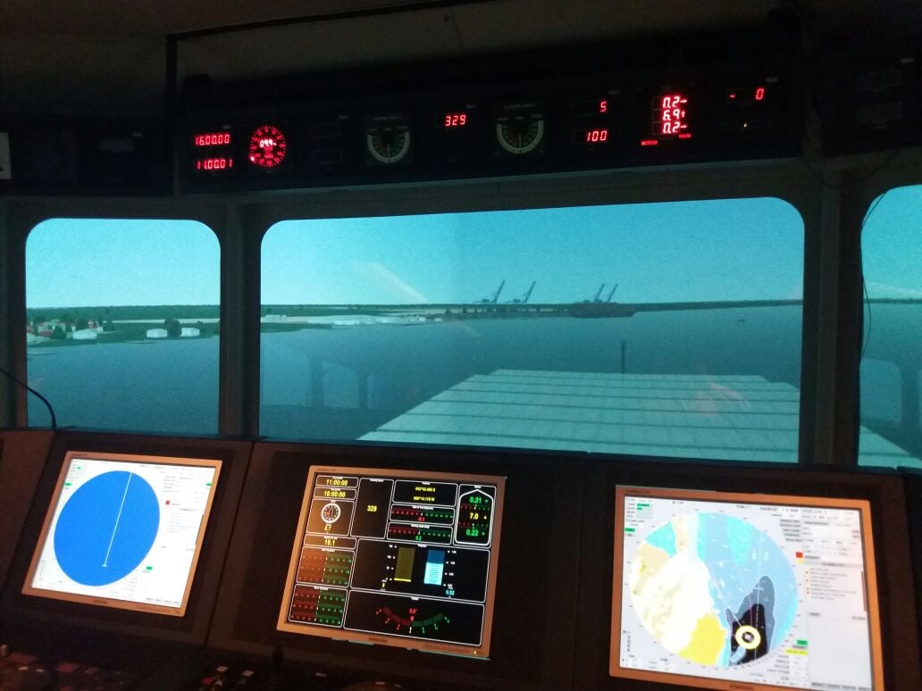 Simulación en tiempo real del diseño del canal de acceso en DPWorld, se realizó en la ciudad de Copenhague – Dinamarca en el año 2017.Atraque